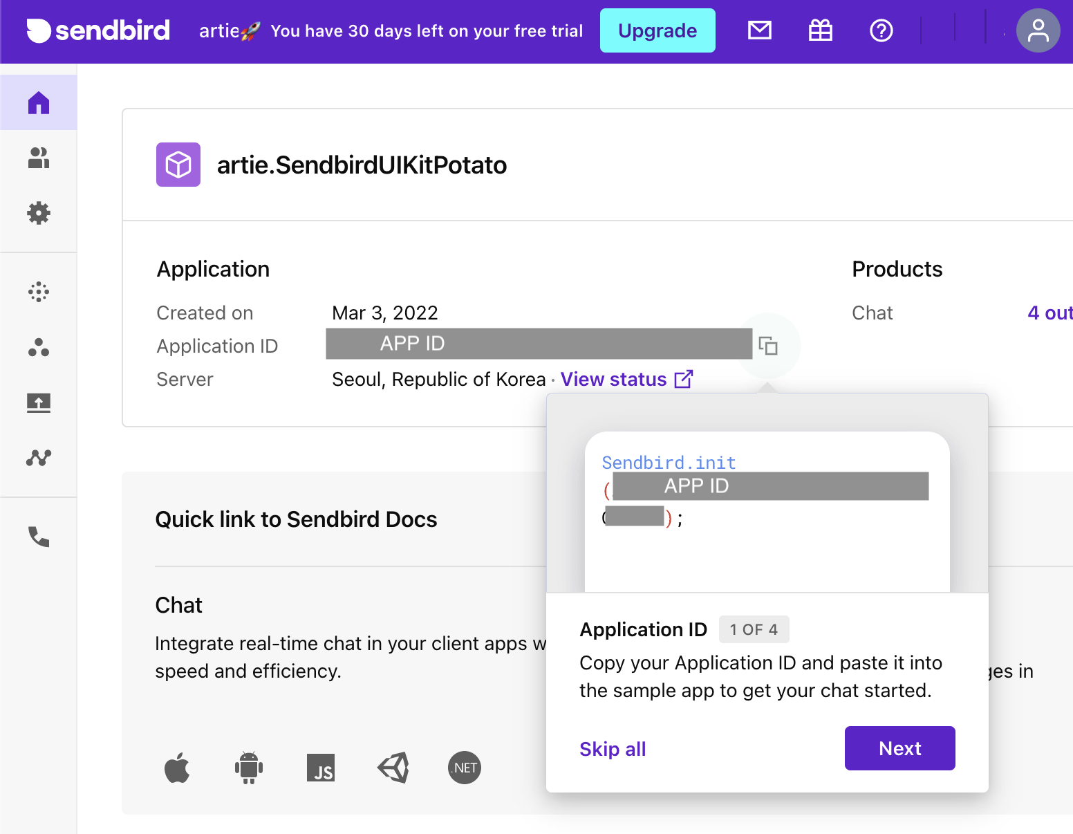 회원가입을 완료하고 대시보드로 들어가게 되면 Application Id 란에 있는 값을 확인할 수 있음.